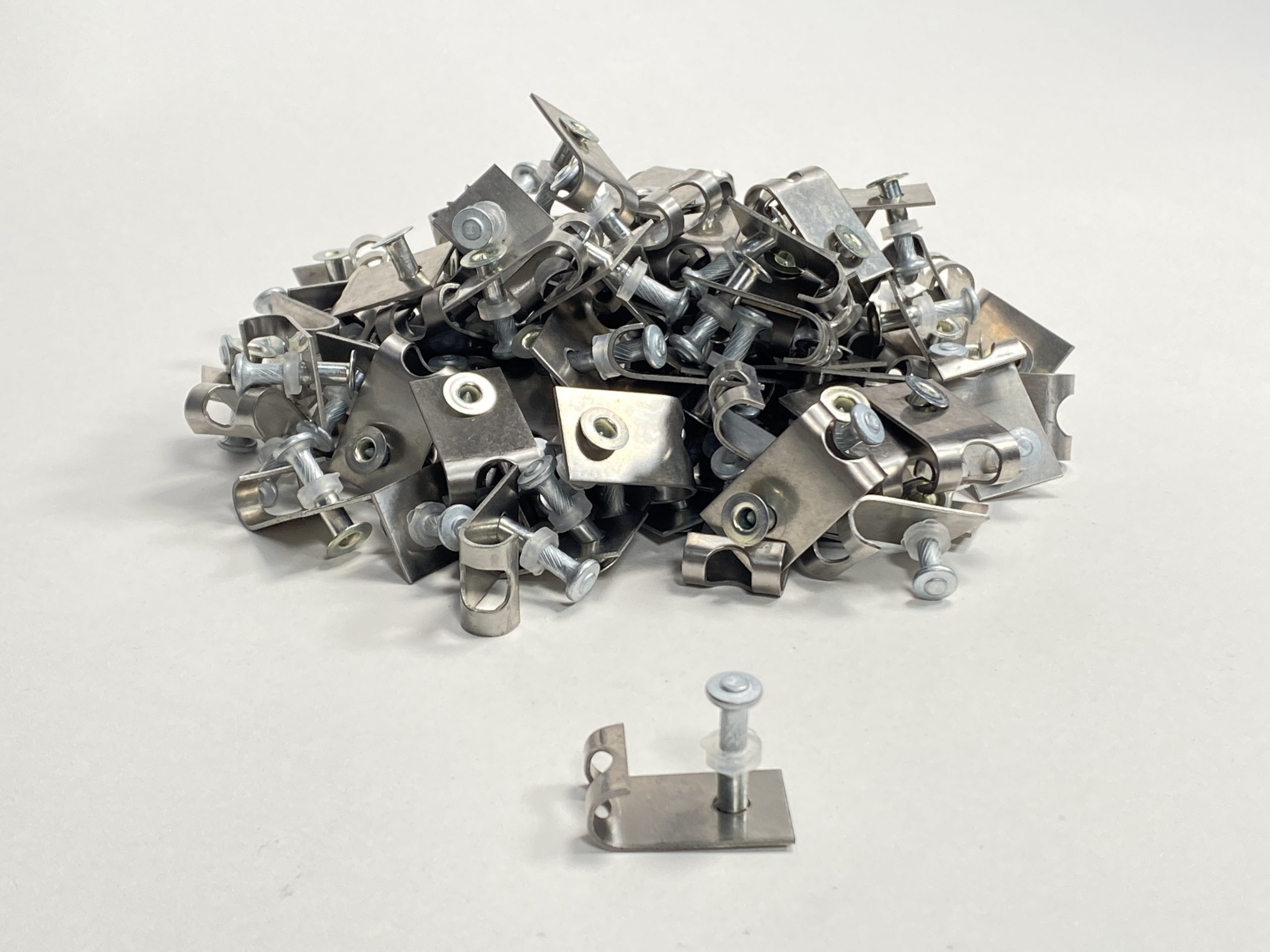 This can be used as a corner or intermediate attachment or as a quick-release cable holder. The Hilti pin makes attaching to steel or concrete a snap. 100 pk.